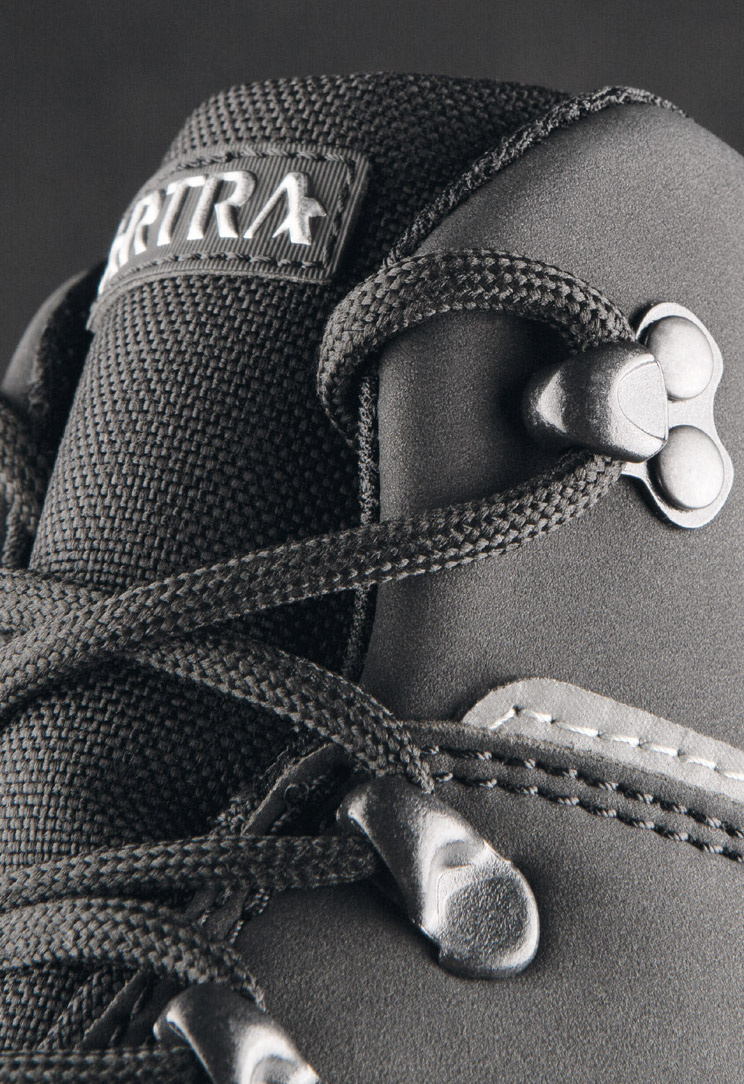 Lehká, bezpečnostní, uzavřená kotníková obuv, se zpevněnou špicí a planžetou proti průcpichu, s hydrofóbní povrchovou úpravou proti vodě. Tato obuv vyniká svou extra lehkostí a prodyšností, kterou jí zajišťuje hydrofóbní mikrovlákno VELOUR PRO 2,2mm. Vhodné všestranné použití při práci jak v letních nebo zimních dnech nebo jako celoroční obuv v exteriéru i interiéru. Bezpečnostní pracovní obuv zn. ARTRA má protiskluzovou podrážku (SRC), antistatickou podrážku a také podrážku odolnou proti pohonným látkám, ESD ochranu a také bezpečnostní ocelovou tužinku a nekovou planžetu proti průpichu.