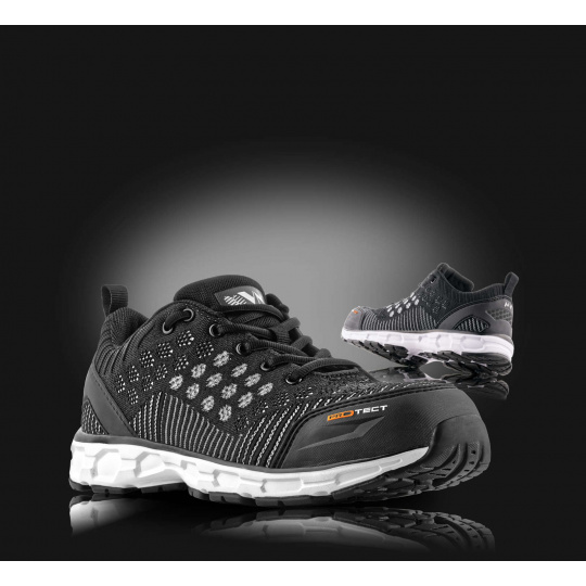 Pracovní ultralehká bezpečnostní polobotka s textilním svrškem v zajímavém designovém provedení. Obuv splňuje SRC protiskluzné vlastnosti, je antistatická a odolná proti palivovým olejům. Provedení S1P SRC – s kompozitní tužinkou a kevlarovou planžetou.