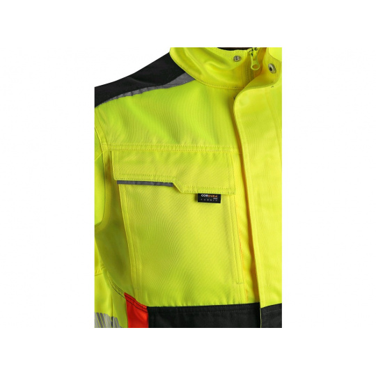 Blůza CXS BENSON výstražná, pánská, žluto-černá: Pánská výstražná blůza, ramena zesílena materiálem CORDURA, rukávy s nastavitelnou manžetou na suchý zip, kryté zapínání na zip, suché zipy a druky, levá náprsní kapsa na zip, pravá krytá klopou, na levém rukávu kapsička na tužky, boční kapsy na zip, segmentované reflexní pásky (šíře 5 cm), kontrastní oranžové a reflexní doplňky. Doporučené použití: stavebnictví, silničáři, údržba, logistika, letecká a lodní doprava.