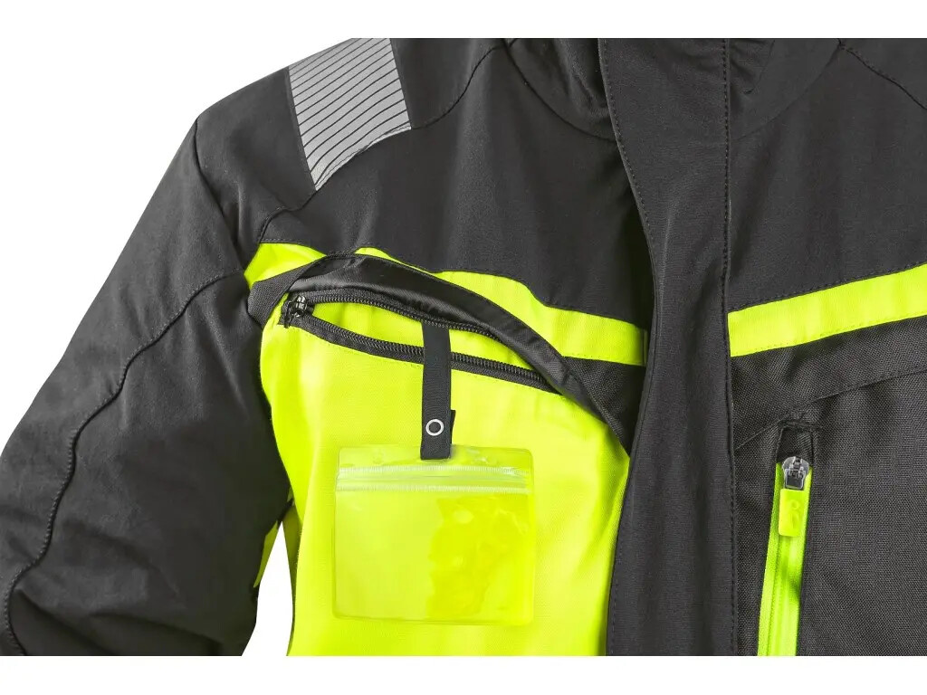 Pánská výstražná blůza se segmentovanými reflexními pruhy o šíři 5 cm. Konstrukce 4-way stretch umožňuje roztahování materiálu ve všech čtyřech směrech a tím i snadný a volný pohyb. Blůza je na exponovaných místech vybavena doplňky z materiálu CORDURA®, rukávy s nastavitelnou manžetou, náprsní kapsou na zip a dvěma skrytými náprsními kapsami na zip, dvěma bočními kapsami na zip, tužkovou kapsičkou na levém rukávu, ventilací v zadní části a bočních částech pod rukávy, vnitřní kapsou na zip a síťovou prodyšnou podšívkou. V pravé náprsní kapse se nachází odnímatelné pouzdro na ID kartu. Doporučené použití: strojírenství, stavebnictví, lehký průmysl, automobilový průmysl, logistika, skladování, spedice, autoservisy, údržba, montáže, letecká a lodní doprava.