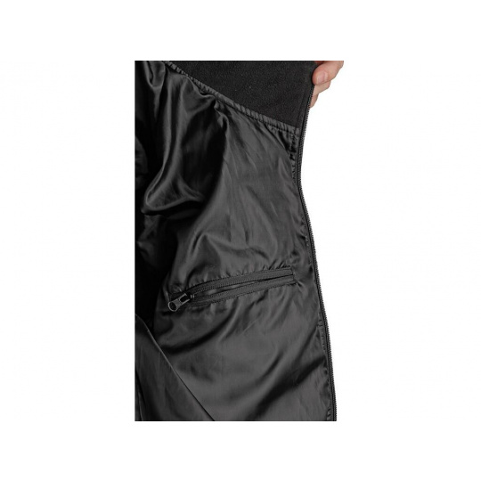 Pánská bunda z kombinovaných materiálů, zateplení v přední a zadní části bundy, fleecový límec, boční kapsy na zip, vnitřní manžety v rukávech, stahování v dolním okraji, vnitřní náprsní kapsa na zip.