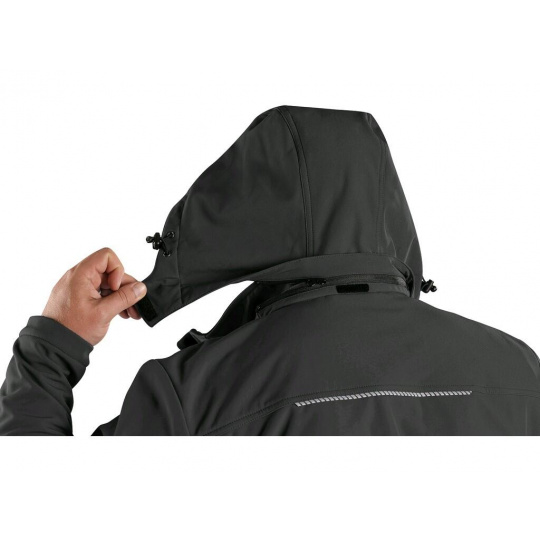 Pánská softshellová bunda, odolná proti vodě a větru, odepínací kapuce, větrání v podpaží, náprsní kapsy - na druk a zip, boční kapsy na zip, vnitřní manžety v rukávech, stahování v dolním okraji, reflexní doplňky, vnitřní náprsní kapsa, TPU membrána. Odolnost materiálu proti průniku vody 5 000 mm mimo oblast švů, paropropustnost 5 000 g/