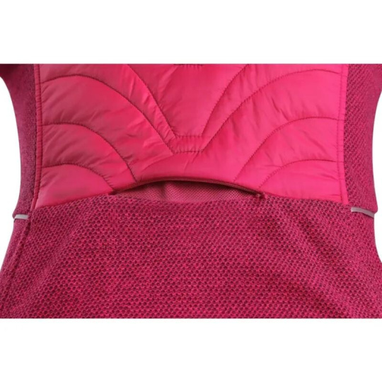 Prošívaná část je lehce zateplená, zatímco kapuce, boky a rukávy jsou z příjemné pleteniny. Bunda má 2 boční kapsy na zip, zipovou ventilaci na zádech a reflexní doplňky. Pas a rukávy jsou ukončeny pružnou gumičkou.