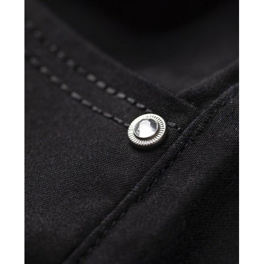 - 2 přední průhmatové kapsy s designovým prošitím, zadní kapsy moderního rifl ového střihu doplněné výšivkou, zpevňující ozdobné rivetky