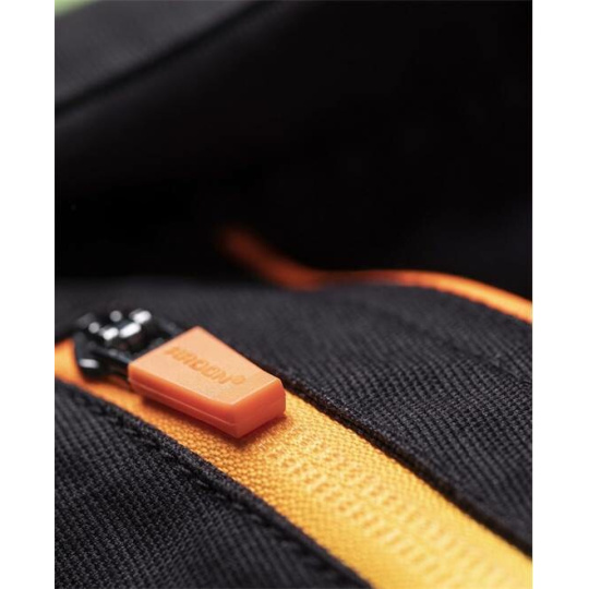 - na pravé nohavici je umístěna multifunkční kapsa na skládací metr, šroubovák a odlamovací nůž se širokými poutky, na levé nohavici je velká dvojitá kapsa krytá patkou na druk, trojité prošití v namáhaných partiích
