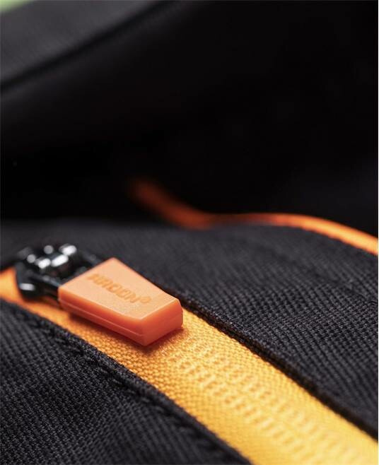 - na pravé nohavici je umístěna multifunkční kapsa na skládací metr, šroubovák a odlamovací nůž se širokými poutky, na levé nohavici je velká dvojitá kapsa krytá patkou na druk, trojité prošití v namáhaných partiích