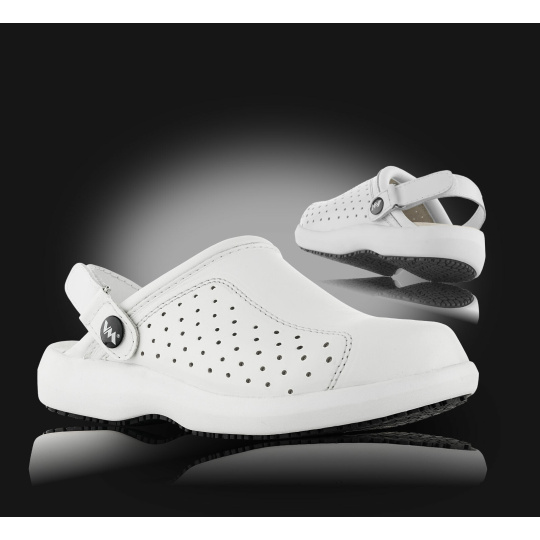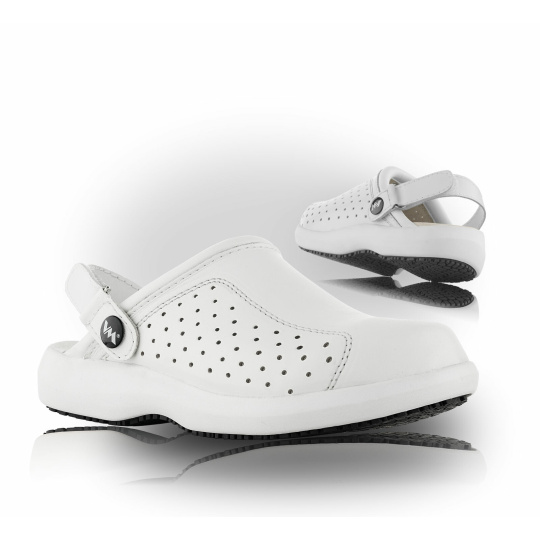 Bílá, dobře omyvatelná, antistatická obuv. Pro větší pohodlí při dlouhodobém nošení má tato obuv odpruženou patu a stélku s podílem aktivního uhlí (pohlcuje pot)