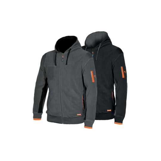 Pracovní microfleecová mikina s kapucou. Tři přední kapsy, jedna vnitřní kapsa. Okraj rukávů je zakončen nápletem odolným proti prodření. Kontrastní prvky kombinující pracovní a sportovní vzhled. Materiál: nežmolkující mikrofleece 160 g/m2