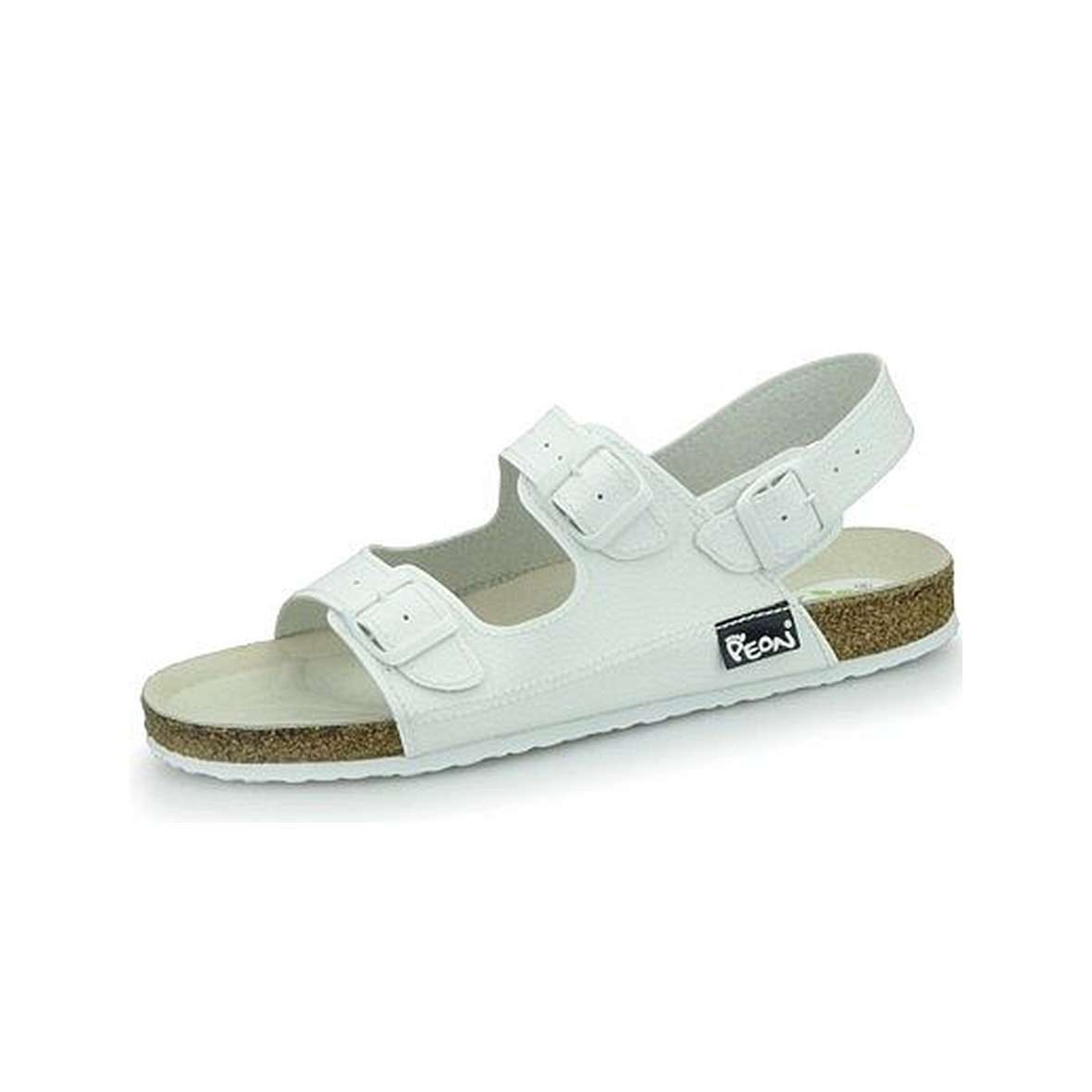 Dámské korkové sandálky pro Vás vyrábí firma Peon v malých sériích v České republice. Zakládají si na kvalitě a preciznosti ve výrobě, obuv Peon® vyrábí s ohledem na pohodlí a zdraví Vašich nohou což dokazuje osvědčení testovacího institutu ITC jako „lehká otevřená pracovní obuv“. Odlehčené sandálky s korkovou mezipodešví, mechovkou tlumící otřesy, dvěma koženými pásky přes nárt a páskem s kovovými sponami přes patu umožňujícími přizpůsobení velikosti.