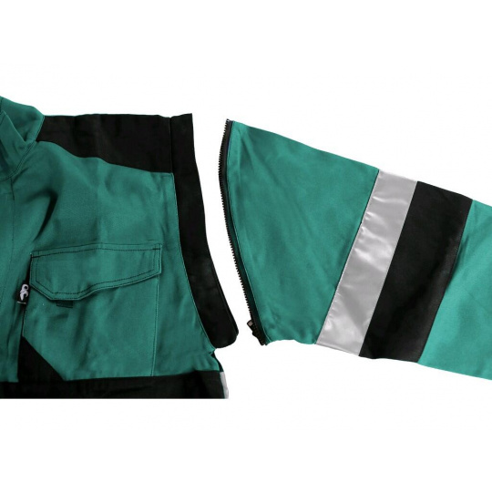 Pánská montérková blůza, odepínací rukávy s pružnou manžetou, kryté zapínání na zip a suché zipy, náprsní kapsy s klopami, skrytá náprsní kapsa na zip, jednoduché boční kapsy, pas na bocích do gumy, reflexní pruhy. Doporučené použití: strojírenství, stavebnictví, lehký průmysl, automobilový průmysl, logistika, skladová manipulace, spedic