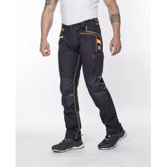 Pracovní kalhoty do pasu Creatron, černé s HV doplňky VELIKOST: 46
