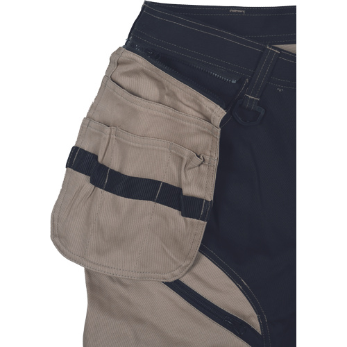 Kvalitní pánské pracovní kalhoty z elastického materiálu; multifunkční kapsy; 2 extra odepínací multifunkční kapsy na zip; zesílená oblast kolen s možností vkládání kolenních výztuh; záložka na nohavici umožňující prodloužení délky až o 5 cm; dekorativní prošití.
