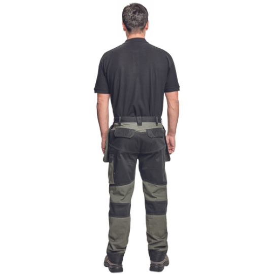 Kvalitní pánské pracovní kalhoty z elastického materiálu; multifunkční kapsy; 2 extra odepínací multifunkční kapsy na zip; zesílená oblast kolen s možností vkládání kolenních výztuh; záložka na nohavici umožňující prodloužení délky až o 5 cm; dekorativní prošití.