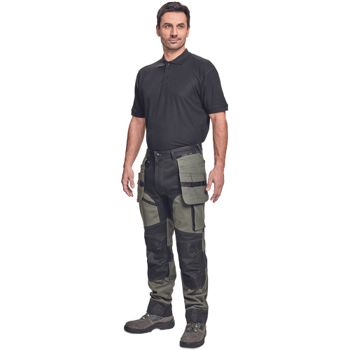 Kvalitní pánské pracovní kalhoty z elastického materiálu; multifunkční kapsy; 2 extra odepínací multifunkční kapsy na zip; zesílená oblast kolen s možností vkládání kolenních výztuh; záložka na nohavici umožňující prodloužení délky až o 5 cm; dekorativní prošití.
