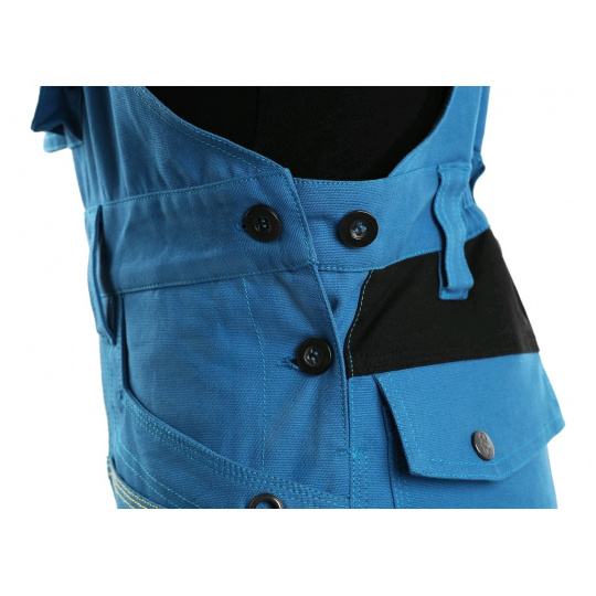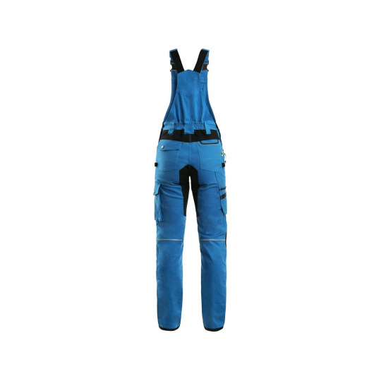 Pracovní kalhoty lacl CXS STRETCH, dámské, středně modré: Dámské montérkové kalhoty s náprsenkou, strečová tkanina umožňující volný pohyb, náprsní kapsa s klopou, pas s poutky na opasek, přední kapsy s kapsou na zip, multifunkční kapsy na obou stranách, kolena zesílena 600D polyesterem, dvě zadní kapsy - jedna s klopou, zadní spodní lem nohavice vyztužen 600D polyesterem, šle s gumou vzadu, reflexní doplňky.