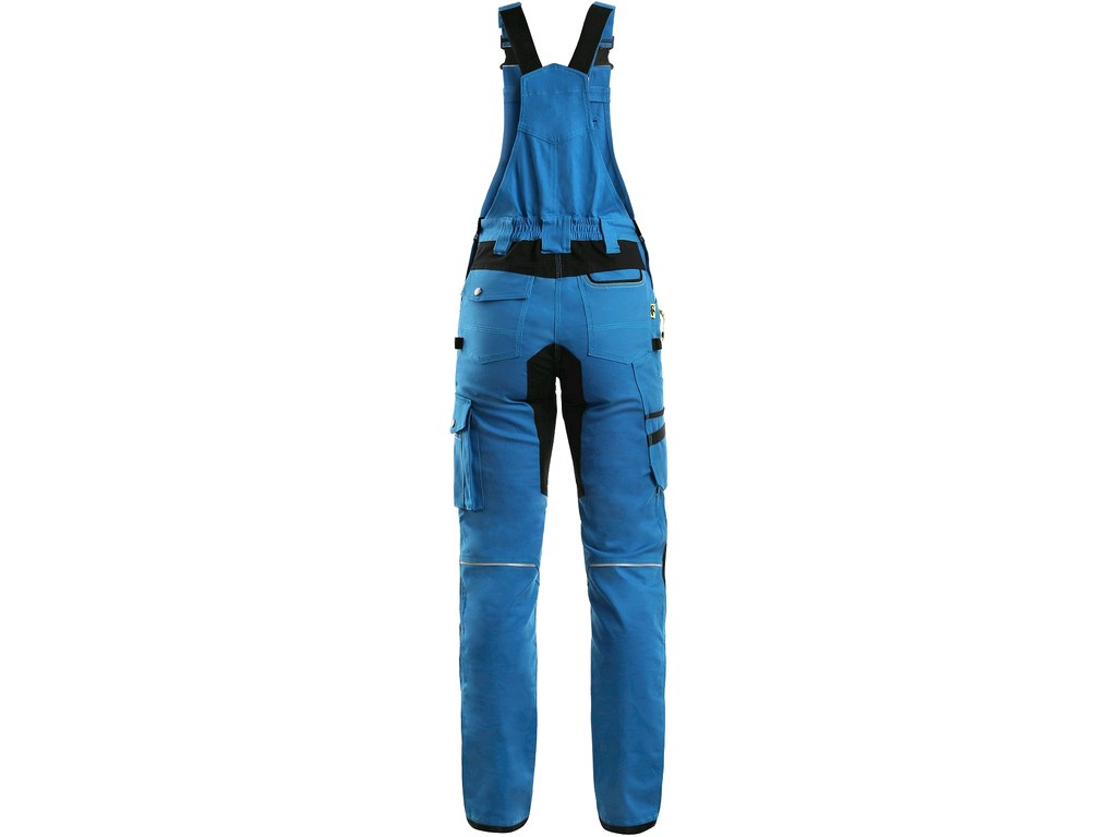 Pracovní kalhoty lacl CXS STRETCH, dámské, středně modré: Dámské montérkové kalhoty s náprsenkou, strečová tkanina umožňující volný pohyb, náprsní kapsa s klopou, pas s poutky na opasek, přední kapsy s kapsou na zip, multifunkční kapsy na obou stranách, kolena zesílena 600D polyesterem, dvě zadní kapsy - jedna s klopou, zadní spodní lem nohavice vyztužen 600D polyesterem, šle s gumou vzadu, reflexní doplňky.