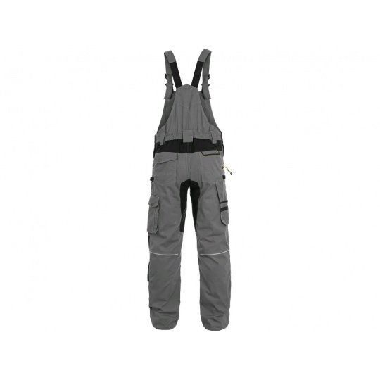 Pánské montérkové kalhoty s náprsenkou, strečová tkanina umožňující volný pohyb, náprsní kapsa s klopou, pas s poutky na opasek, přední kapsy s kapsou na zip, multifunkční kapsy na obou stranách, kolena zesílena 600D polyesterem s možností vložení kolenních výztuh, dvě zadní kapy - jedna s klopou, zadní spodní lem nohavice vyztužen 600D polyesterem,šle s gumou vzadu, reflexní doplňky. Doporučené použití: strojírenství, stavebnictví, lehký průmysl, automobilový průmysl, logistika, skladová manipulace, spedice, autoservisy, údržba, montáže, zemědělství, zahrada, hobby.
