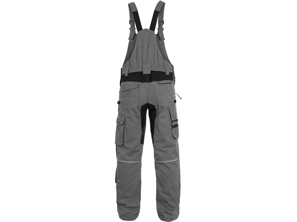 Pánské montérkové kalhoty s náprsenkou, strečová tkanina umožňující volný pohyb, náprsní kapsa s klopou, pas s poutky na opasek, přední kapsy s kapsou na zip, multifunkční kapsy na obou stranách, kolena zesílena 600D polyesterem s možností vložení kolenních výztuh, dvě zadní kapy - jedna s klopou, zadní spodní lem nohavice vyztužen 600D polyesterem,šle s gumou vzadu, reflexní doplňky. Doporučené použití: strojírenství, stavebnictví, lehký průmysl, automobilový průmysl, logistika, skladová manipulace, spedice, autoservisy, údržba, montáže, zemědělství, zahrada, hobby.