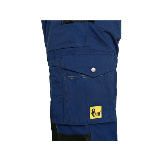 Pánské montérkové kalhoty s náprsenkou, strečová tkanina umožňující volný pohyb, náprsní kapsa s klopou, pas s poutky na opasek, přední kapsy s kapsou na zip, multifunkční kapsy na obou stranách, kolena zesílena 600D polyesterem s možností vložení kolenních výztuh, dvě zadní kapsy - jedna s klopou, zadní spodní lem nohavice vyztužen 600D polyesterem,šle s gumou vzadu, reflexní doplňky. Doporučené použití: strojírenství, stavebnictví, lehký průmysl, automobilový průmysl, logistika, skladová manipulace, spedice, autoservisy, údržba, montáže, zemědělství, zahrada, hobby.