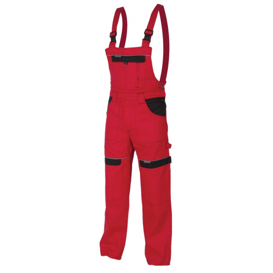 Pracovní kalhoty s laclem pánské COOL TREND červené: Pracovní kalhoty ze 100% bavlny, precizně zpracované, vysoce pevné. Kalhoty mají náprsenku. 2x přední kapsy, 2x zadní kapsy, kapsa na tužku, poutko na metr, zdvojená kolena. Montérková řada COOL TREND ze 100% bavlny patří mezi nejkvalitnější a nejnovější montérkové kolekce a to především díky pevnosti materiálů gramáže 260 g/m2. Montérky nové generace.