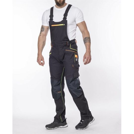 Pracovní kalhoty s laclem Creatron, černé s HV doplňky VELIKOST: 46