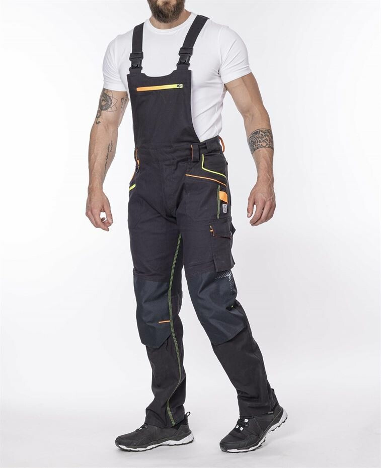 Pracovní kalhoty s laclem Creatron, černé s HV doplňky VELIKOST: 46