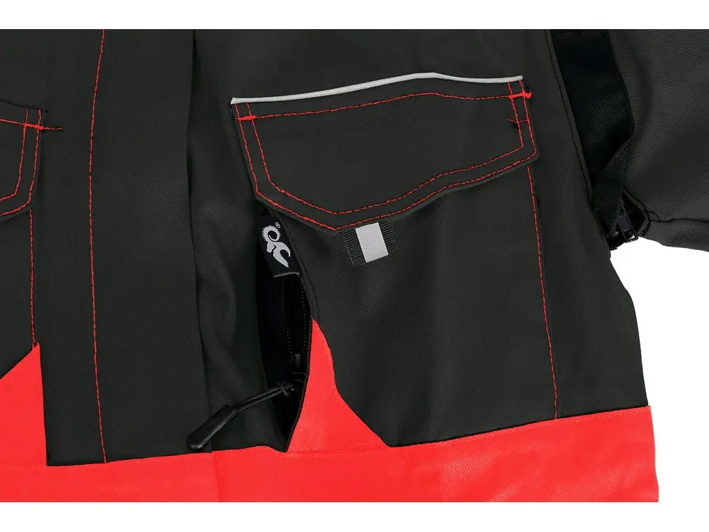 Pracovní kombinéza je vyrobená z velmi kvalitní tkaniny a gramáži 260g/m2 Atraktivní kombinace černé a červené.