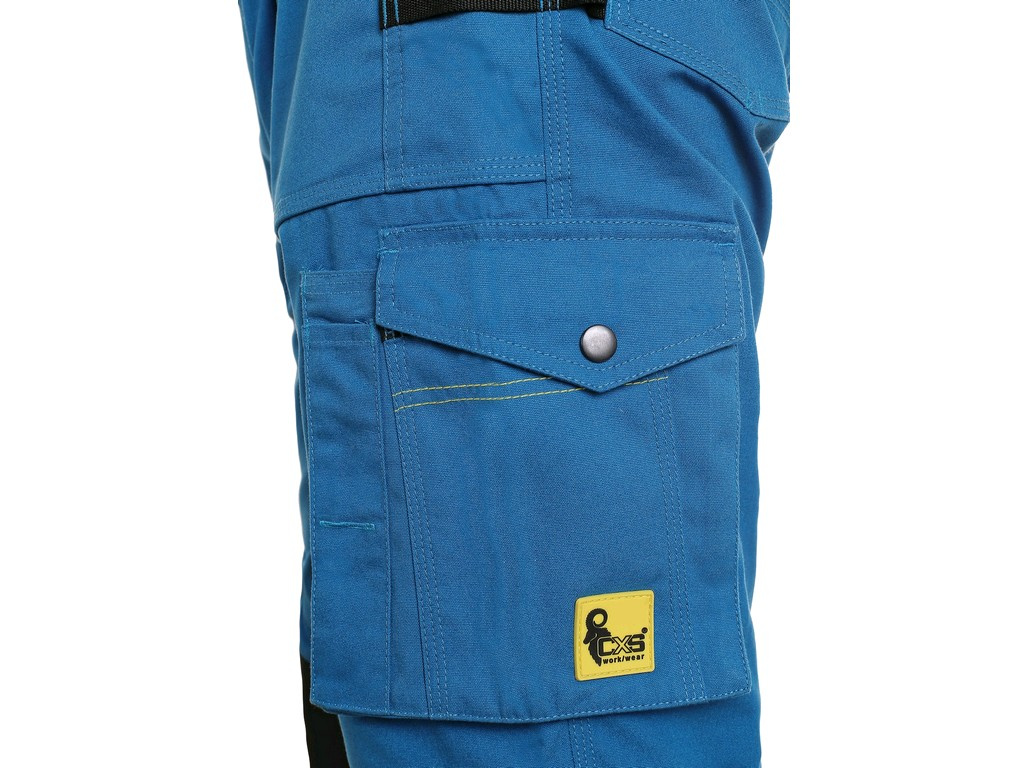 Pracovní kraťasy CXS Stretch, středně modré - Pánské montérkové kraťasy, strečová tkanina umožňující volný pohyb, pas s poutky na opasek, speciální zasouvací patent v pase proti samovolnému rozepnutí, přední kapsy s kapsou na zip, multifunkční kapsy na obou stranách, dvě zadní kapsy - jedna s klopou. Doporučené použití: letní pracovní oděv, strojírenství, stavebnictví, lehký průmysl, automobilový průmysl, logistika, skladová manipulace, spedice, autoservisy, údržba, montáže, zemědělství, zahrada, hobby.