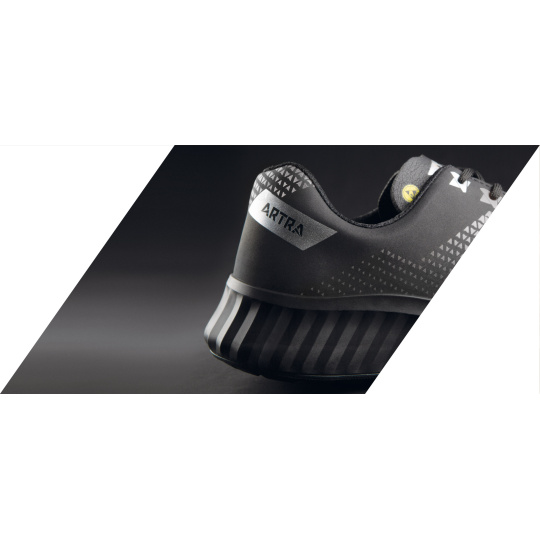 Extra lehká, pracovní, uzavřená obuv slovenské výroby. Tato pracovní polobotka vyniká svou extra lehkostí a prodyšností, kterou jí zajišťuje hydrofóbní mikrovlákno NUBUCK PRO 2,2mm. Vhodné všestranné použití jak při práci v letních dnech nebo jako celoroční obuv v exteriéru i interiéru. Pracovní polobotka zn. ARTRA Arosio má protiskluzovou podrážku (SRC), antistatickou podrážku a také podrážku odolnou proti pohonným látkám, ESD ochranu.