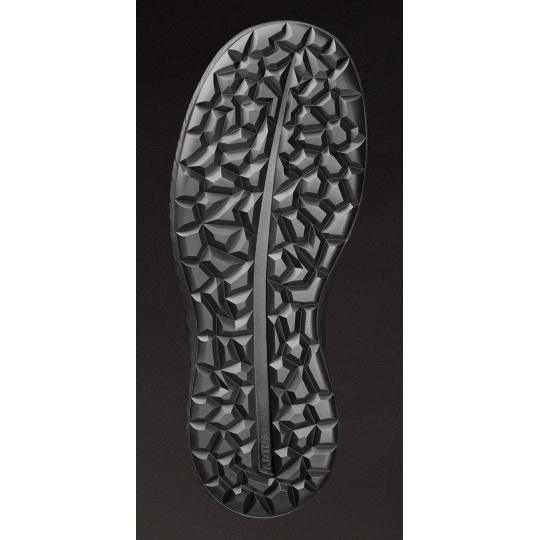 Bezpečnostní polobotka. Svršek - veganská NUVYA SKINYUM™, podšívka AEROLYUM™, tužinka - kompozitní LIBERYUM™, planžeta - FLEXYUM™, podešev LYFTOR™ PU.2D s technologií LEVITARYUM™.