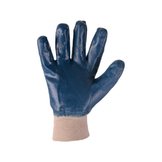 Rukavice celomáčené v modrém nitrilu s úpletovou manžetou. Doporučené aplikace: stavebnictví, vlhké prostředí, zemědělství, vodovody a kanalizace.