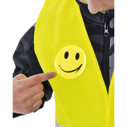 • výstražný balíček určený dětem: výstražná vesta, výstražné pásky, výstražná samolepka, výstražná klíčenka • oděv je určen pro děti starší tří let s výškou postavy 120–140 cm k nošení přes svrchní oblečení pro vizuální signalizaci přítomnosti uživatele za jakýchkoli světelných podmínek ve dne i v noci • splňuje normu EN 1150
