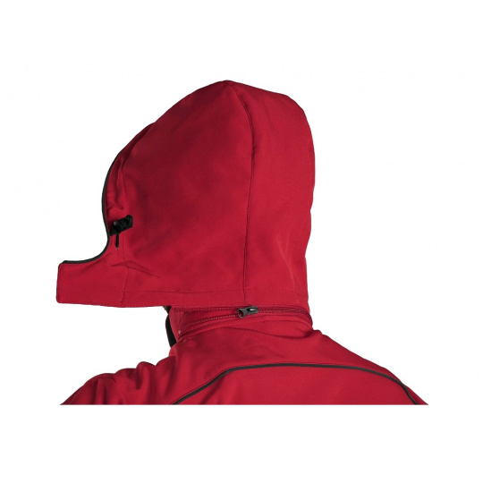 Pánská softshellová bunda s odepínací kapucí, odolná proti vodě a větru, zapínaní na zip, větrání v podpaží, náprsní kapsa na zip, boční kapsy na zip, vnitřní manžety v rukávech, stahování v dolním okraji, reflexní doplňky, TPU membrána. Odolnost materiálu proti průniku vody 8 000 mm mimo oblast švů, paropropustnost 3 000 g/m2/24h.