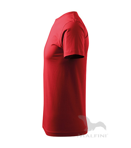 Tričko s krátkým rukávem, kulatý průkrčník se zdvojenými švy. Na rukávech a spodním lemu jsou použity švy v červené barvě. Zpevňující krční páska také v červené barvě. Tričko je označeno logem naší obchodní značky na rukávu a v bočním švu všitým štítkem. Látka je celoplošně potištěna s finální silikonovou úpravou materiálu, která zajišťuje vyšší měkkost a pružnost, rozměrovou stálost a omezuje žmolkovatění.