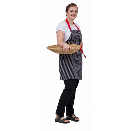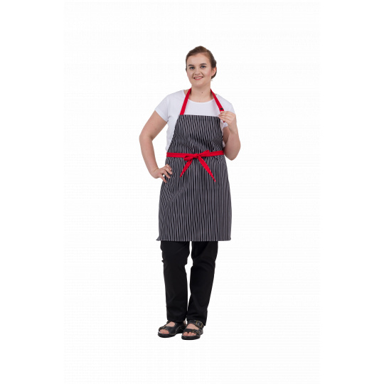 Zástěra CXS Dana, dámská, červený proužek: Dámská zástěra s náprsenkou, upevnění v pase na tkanici.