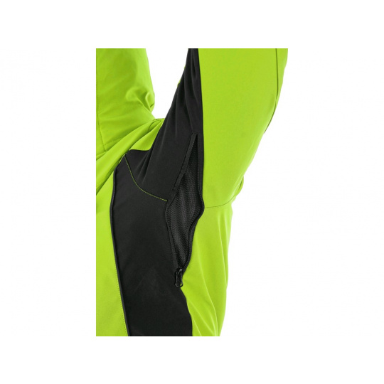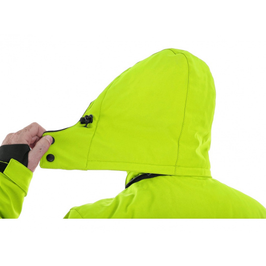 Výstražná zateplená bunda do pasu, 2v1, odolná proti vodě a větru, reflexní pruhy, lepené švy, zapínaná na zip krytý legou, odepínací rukávy s regulovatelnými a vnitřními manžetami, kapuce v límci, fleecový vnitřní límec, v délce pružný pas, 2 spodní kapsy, dvě náprsní kapsy kryté patkou na suché zipy, na levé straně poutko na přichycení ID karty, na pravé straně smyčka na radiostanici, jedna vnitřní kapsa. Uvnitř je zip pro snadnou aplikaci výšivky na vnější straně bundy.